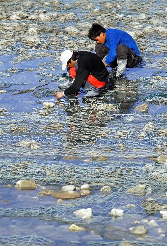 在新疆尉犁縣的阿其克河口分水樞紐壩底鋪設格賓網。阿其克河口分水樞紐是正在進行的塔里木河綜合治理工程的...[