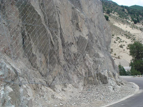 SNS柔性防護網(wǎng)-被動系列適用于建筑設(shè)施旁有緩沖地帶的高山峻嶺,把巖崩、飛石、雪崩、泥石流攔截在建筑設(shè)施之外,避開災(zāi)害對建筑設(shè)施的毀壞。 主要產(chǎn)品有以下幾種類型: P1型:單層斜攔截(h < 100m)。工字鋼柱、拉錨系統(tǒng)、支撐繩、減沖環(huán)、鋼絲繩網(wǎng)。 P2型:復(fù)式攔截(h < 100m)。 P3型:通道式攔截(道路兩旁,一邊是陡壁,一邊是深淵)。